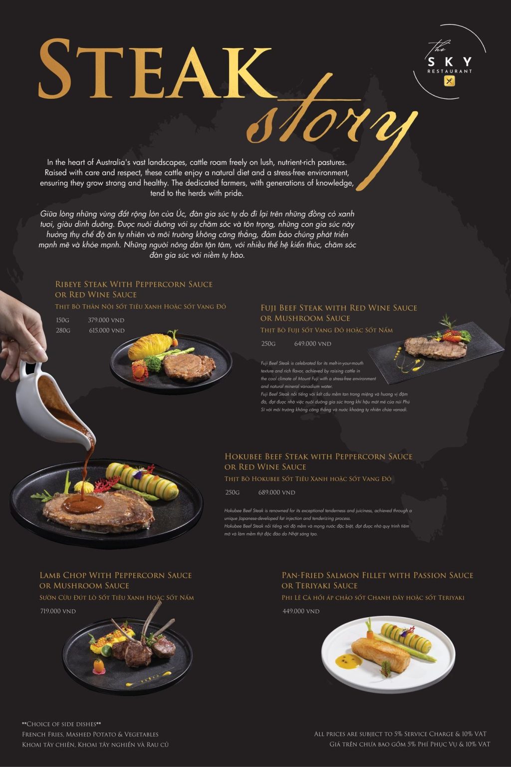 Chicken Surf & Turf $31 Char grilled garlic chicken breast fillet topped with a garlic seafood sauce & served with garden salad & steak fries or with …